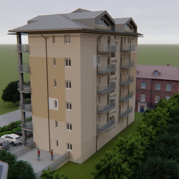 Costruito nel 1966 e sito in Via Parigi 14, ad Aosta, il fabbricato è’ costituito da 25 unità complessive, di cui 14 abitative e 11 autorimesse al piano terra. Nell’anno 2019, a seguito di alcune esigenze di tipo manutentivo manifestatesi negli anni unitamente all’avvento della nuova agevolazione fiscale ECOBONUS 70%, il condominio delibera di procedere a realizzare un intervento completo di riqualificazione estetica e funzionale.