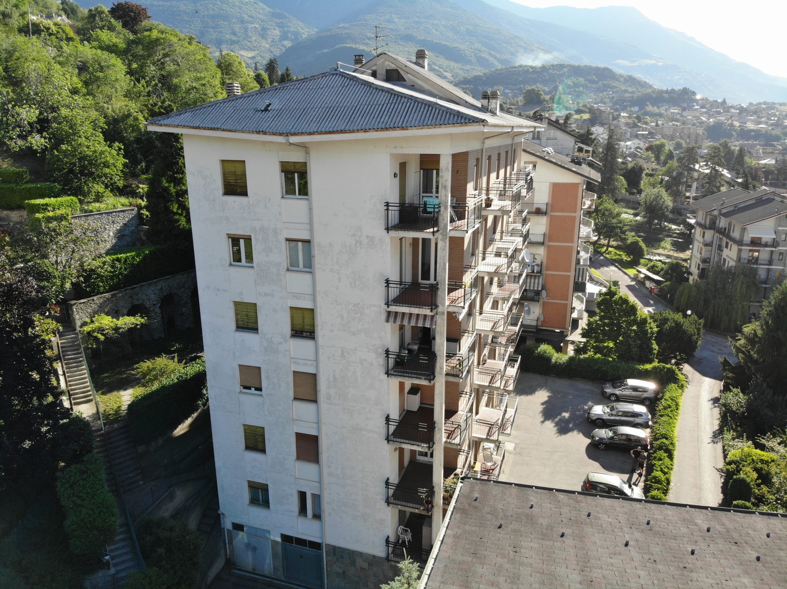 Costruito nel 1966 e sito in Via Parigi 14, ad Aosta, il fabbricato è’ costituito da 25 unità complessive, di cui 14 abitative e 11 autorimesse al piano terra. Nell’anno 2019, a seguito di alcune esigenze di tipo manutentivo manifestatesi negli anni unitamente all’avvento della nuova agevolazione fiscale ECOBONUS 70%, il condominio delibera di procedere a realizzare un intervento completo di riqualificazione estetica e funzionale.