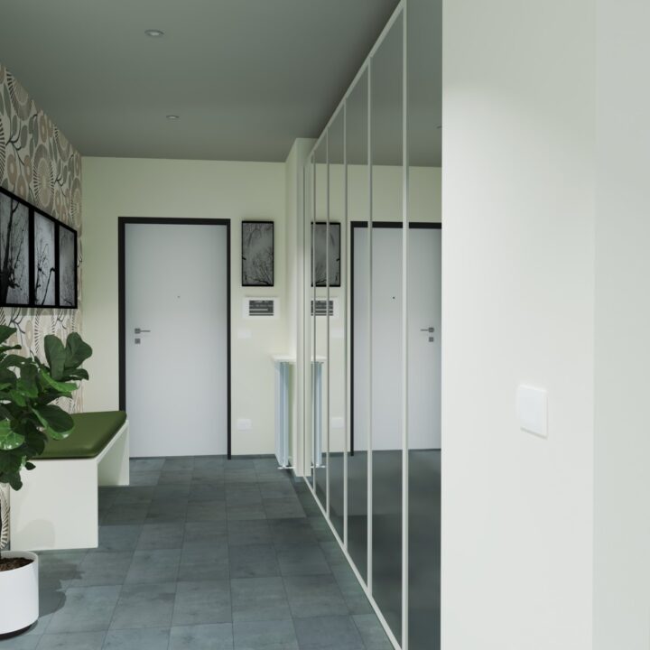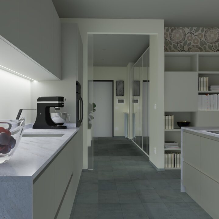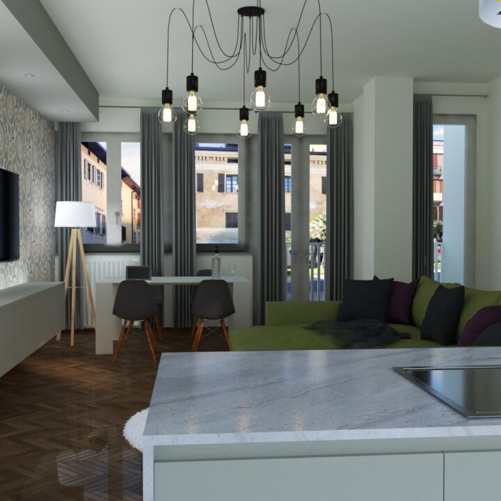 L'unità immobiliare oggetto di intervento è situata all'interno di un fabbricato in zona centrale di Aosta; La sua dimensione, il periodo di costruzione e i materiali presenti lo hanno certamente mantenuto in buon stato di conservazione; gli interventi previsti più importanti sono: 1. creazione open space cucina-soggiorno; 2. creazione controsoffittatura per gestione impianti; 3. Rifacimento integrale del bagno.